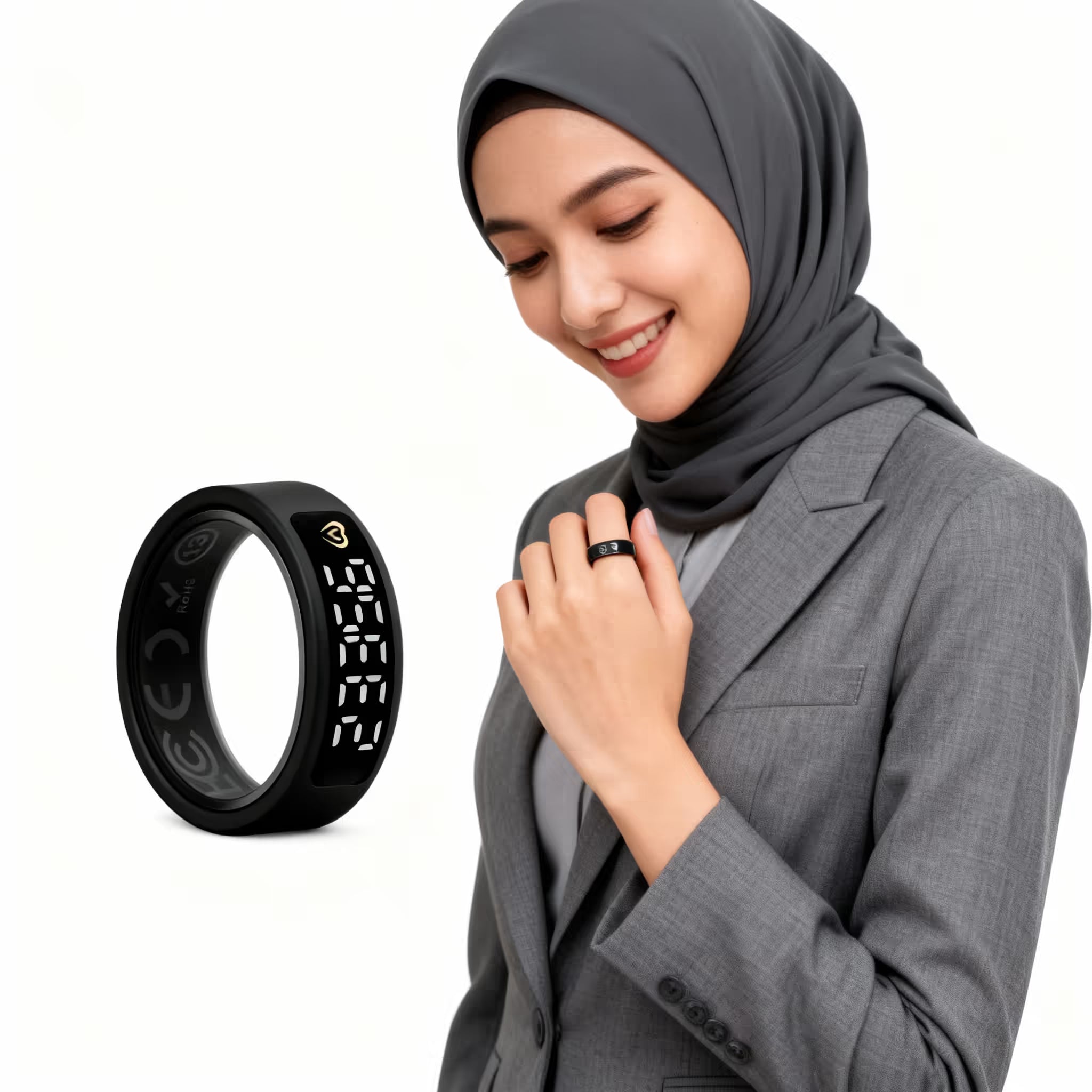 A dual-purpose smart ring for Dhikr (ذِكْر) and wellness tracking. Quiet on the finger. Powerful in the app.